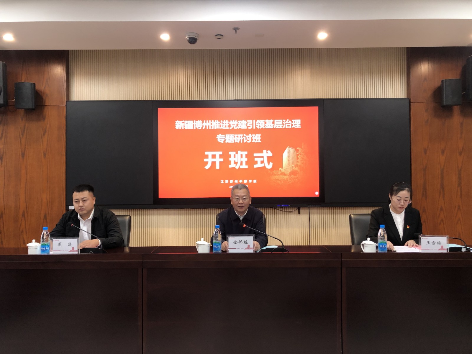 10月30日上午,培训班举行开班式,江苏苏州干部学院副院长金伟栋出席并致欢迎辞,博州党委党校(行政学院)学员管理科科长王雪梅作动员讲话。
