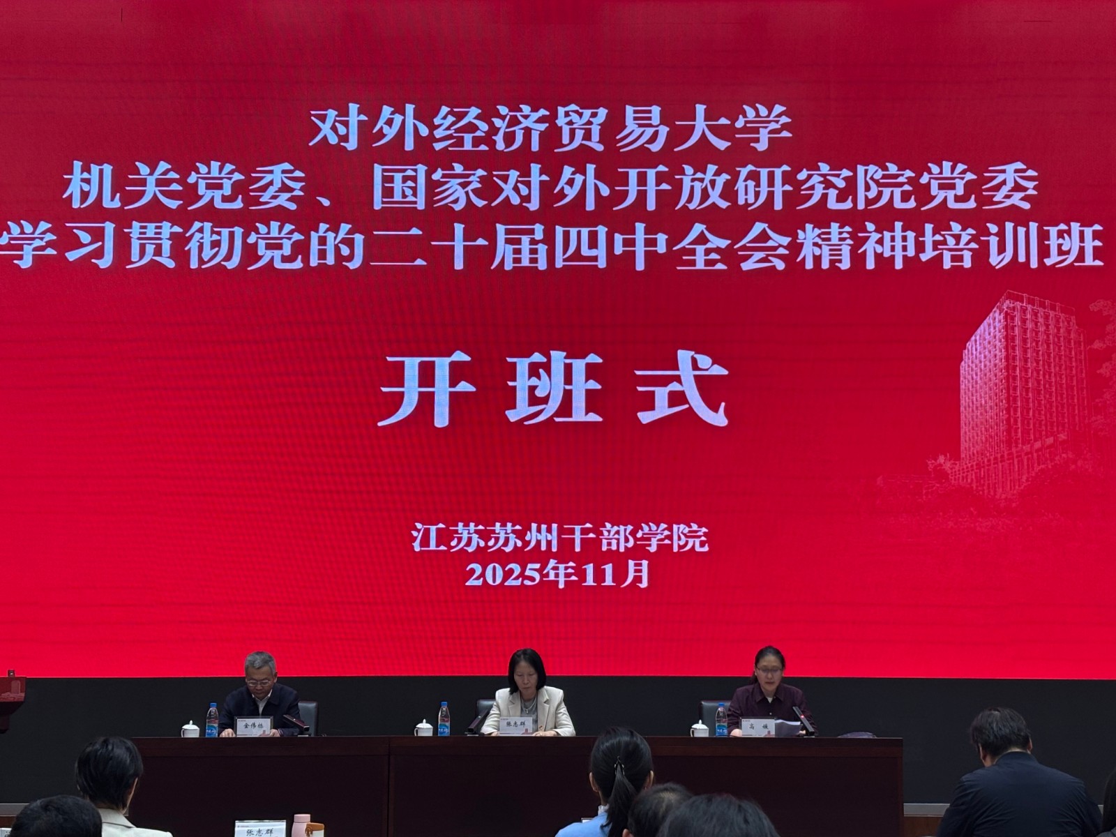 为深入学习贯彻党的二十届四中全会精神,切实把思想和行动统一到党中央重大决策部署上来,11月5日至8日,对外经济贸易大学机关党委、国家对外开放研究院党委联合举办的学习贯彻党的二十届四中全会精神培训班在江苏苏州干部学院成功举办。