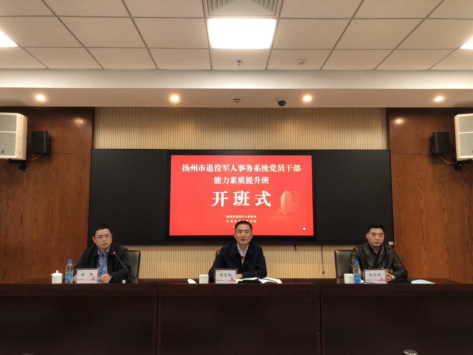 近日,由扬州市退役军人事务局主办的扬州市退役军人事务系统党员干部能力素质提升班在我院顺利举办。11月17日下午,培训班举行开班式,江苏苏州干部学院副院长仇光辉出席并致欢迎辞,扬州市退役军人事务局党组书记、局长陆志林作动员讲话。